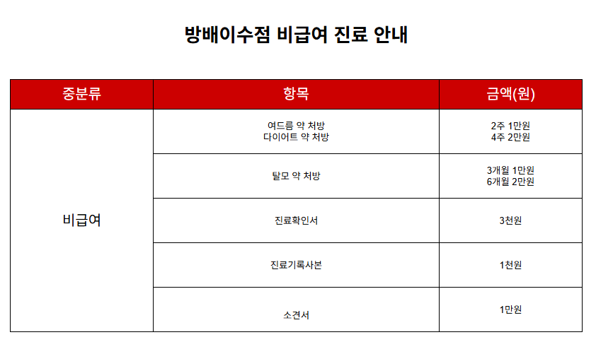 비급여 수가표